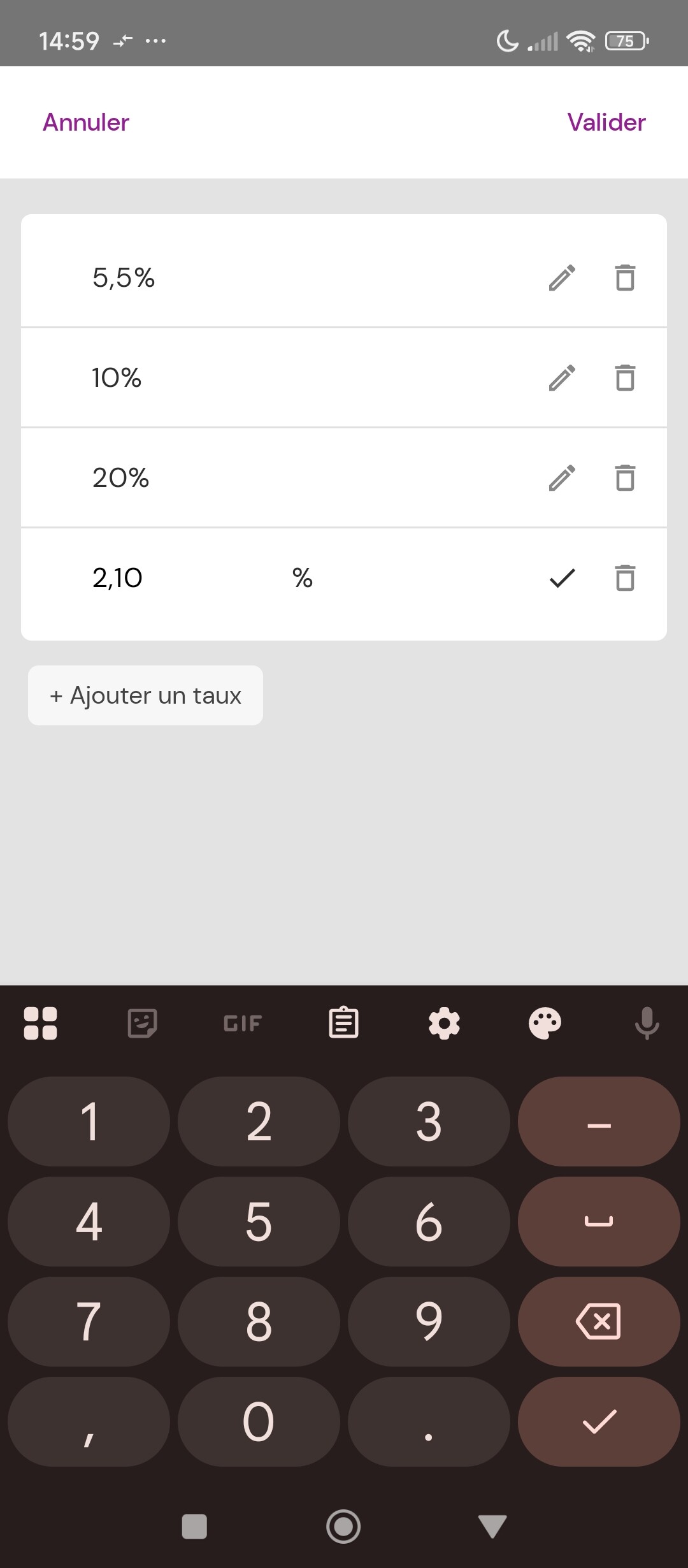 Vous pouvez maintenant ajouter des taux de TVA supplĂ©mentaires, ou modifier les taux existants (5,5%, 10% et 20%). Vous pouvez ainsi utiliser dâautres taux (pour la Corse notamment) et facturer dans dâautres pays.
